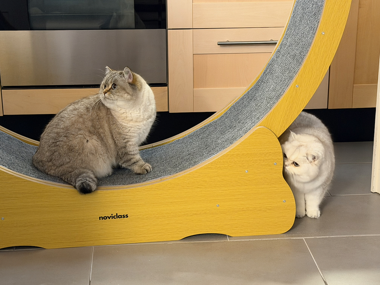Neues Möbelstück im Haus. Offiziell: Cat Wheel.Inoffiziell: Großgerät zur Charakterstudie. Fee hat das Prinzip schnell verstanden.Mit strategisch platzierter Bestechung läuft …