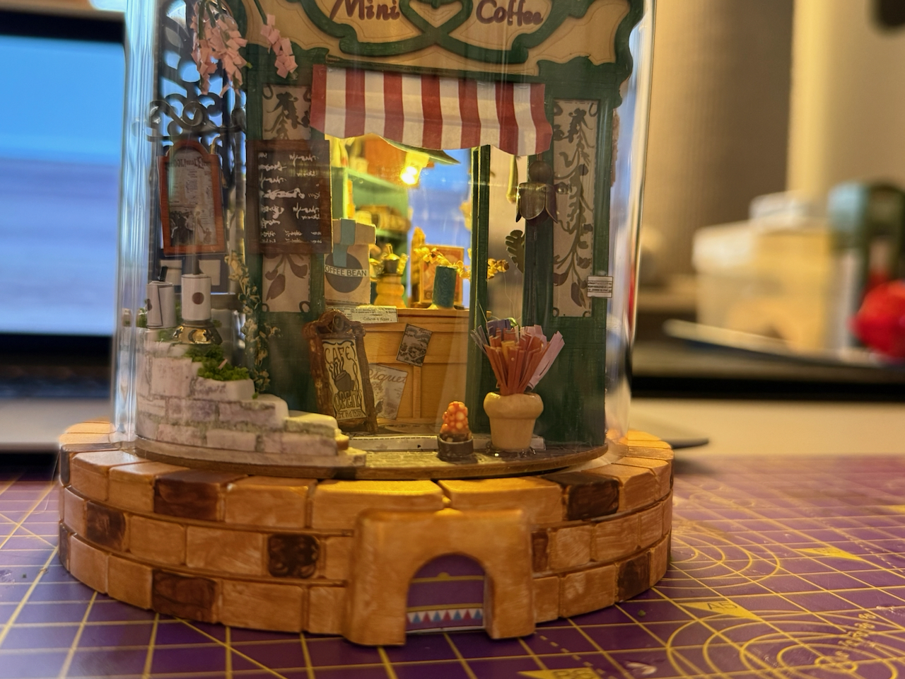 Neues Bastelprojekt. Oder besser: neues Gedulds-Experiment. Im November in Tokio mitgenommen, jetzt endlich gebaut: ein winziges Café im Miniaturformat. Anfangs …