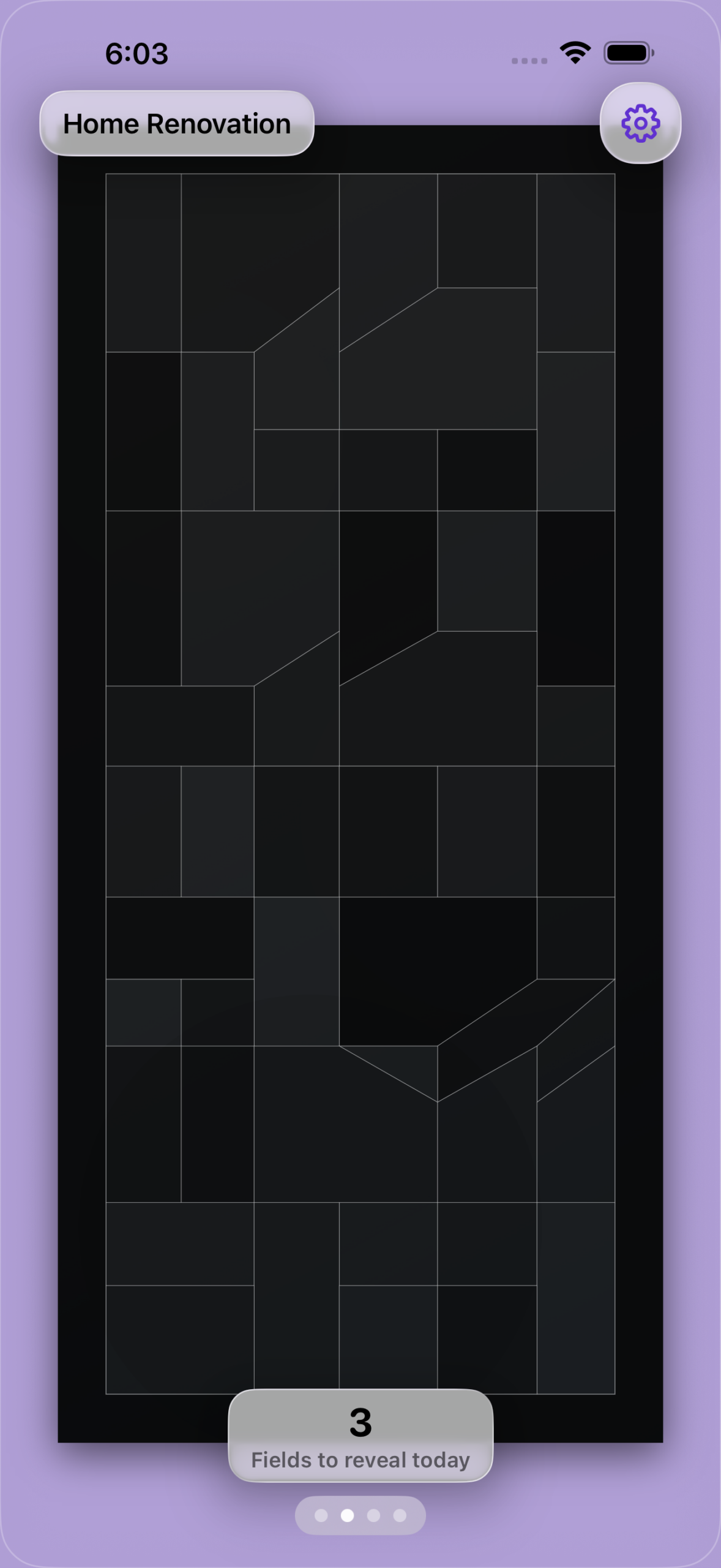 Hinter diesem ruhigen, klaren Raster steckt dein ausgewähltes Bild. Mit der Zeit öffnet sich das Grid ganz langsam und was vorher verborgen war, wird nach und nach sichtbar.